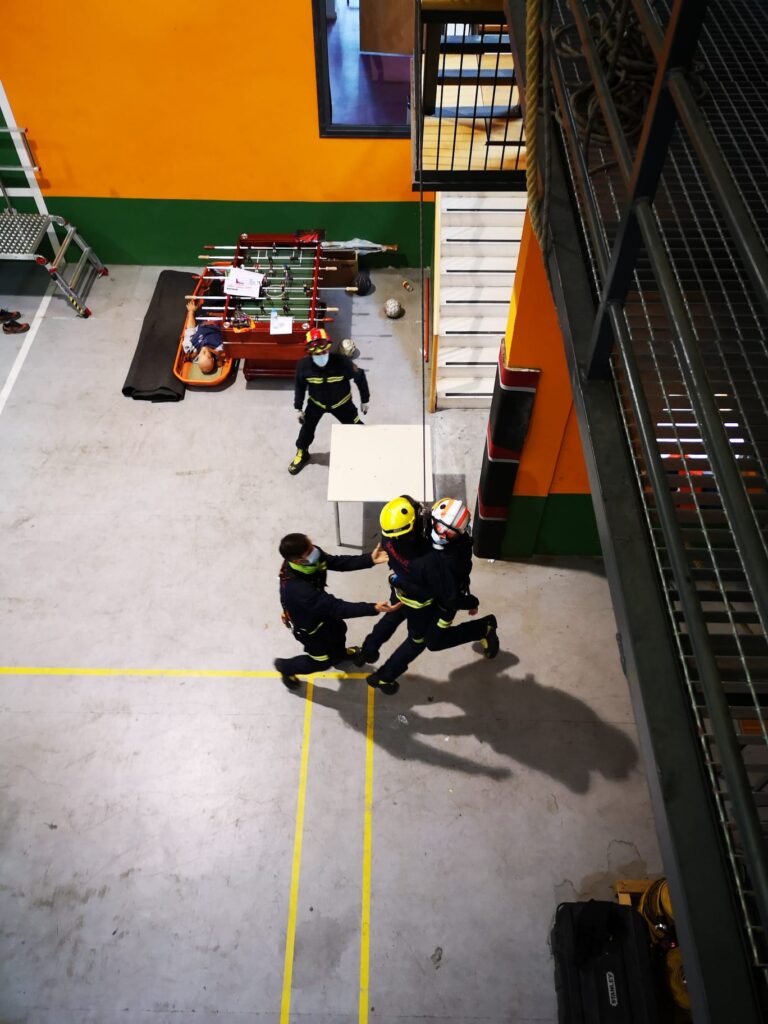 El equipo de instructores de la AIB ha estado formado por 7 bomberos y 4 psicólogos, que en estos 4 días ha formado a 48 compañeros, en dos ediciones de 16 horas cada una distribuidas de la siguiente manera: procedimiento operativo, prevención y afrontamiento del estrés postraumático para intervinientes, contención y acompañamiento hasta lugar seguro, talleres prácticos de rescate en altura, negociación y 3 role play o maniobras finales.